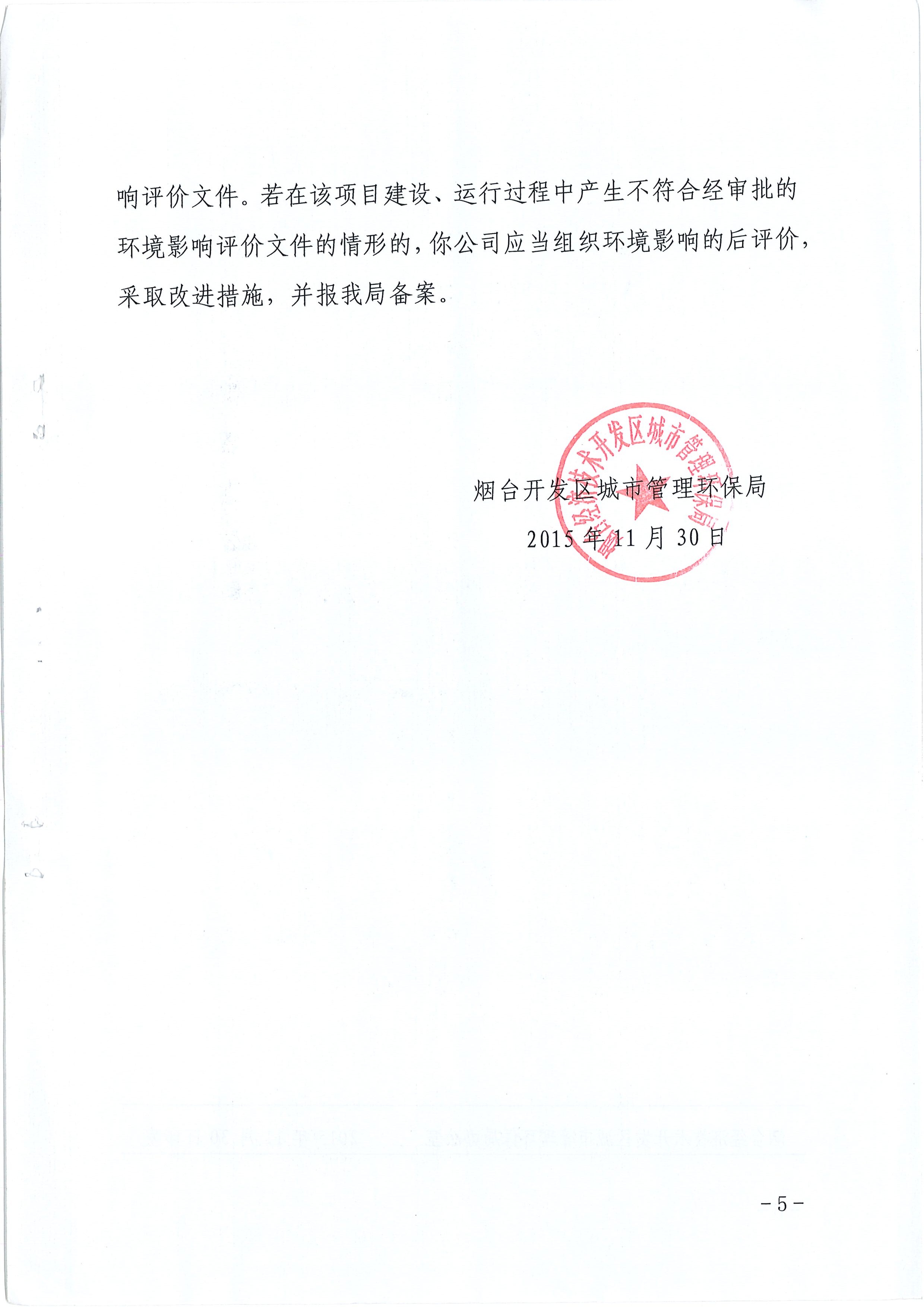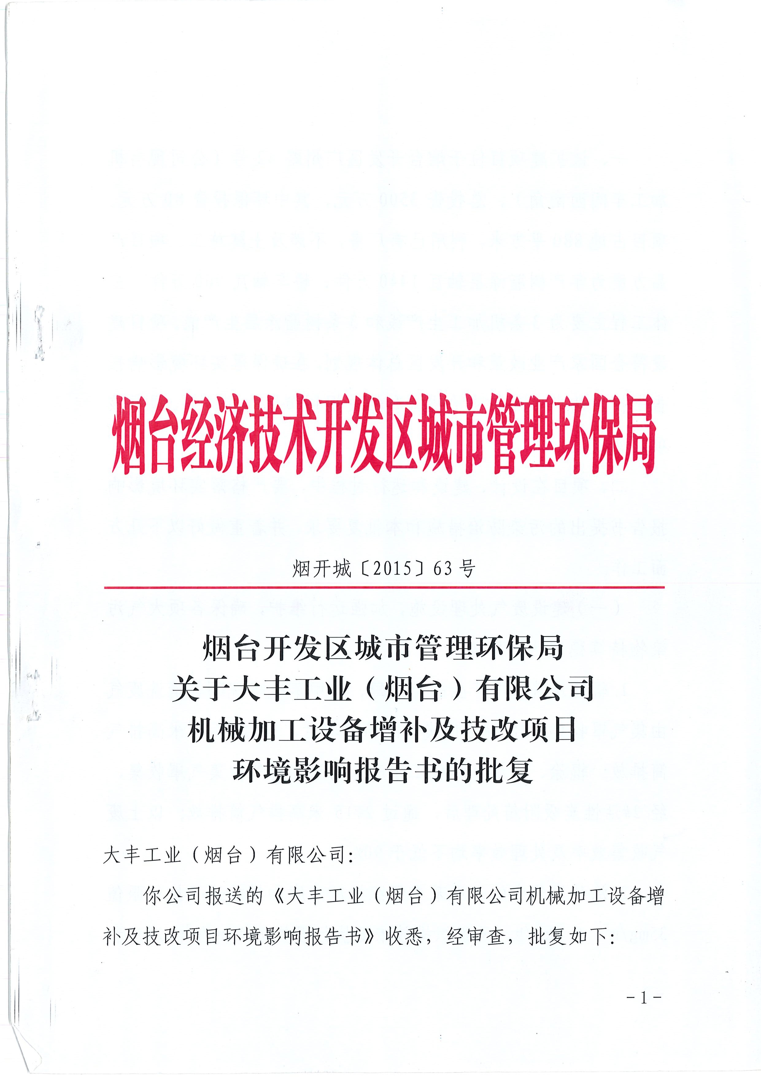 煙臺開發(fā)區(qū)城市管理環(huán)保局關(guān)于大豐工業(yè)(煙臺)有限公司機(jī)械加工設(shè)備增補(bǔ)及技改項目環(huán)境影響報告書的批復(fù)