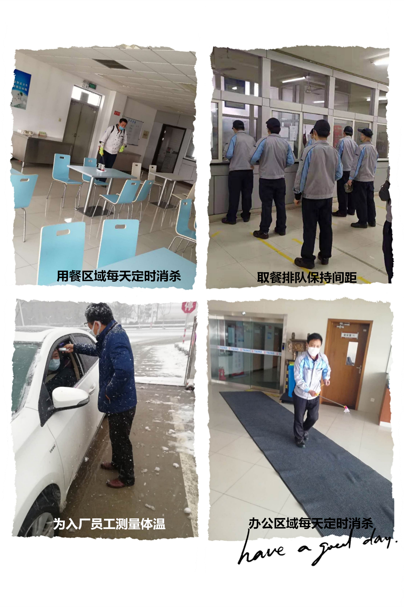 公司全體員工,在各小組黨員干部的帶領(lǐng)下,積極配合、主動上報出行、健康狀況等信息,35名員工有出國、出省、出市等經(jīng)歷,均主動上報,并根據(jù)要求自我隔離,復工后依舊配合公司安排進行疾控工作。