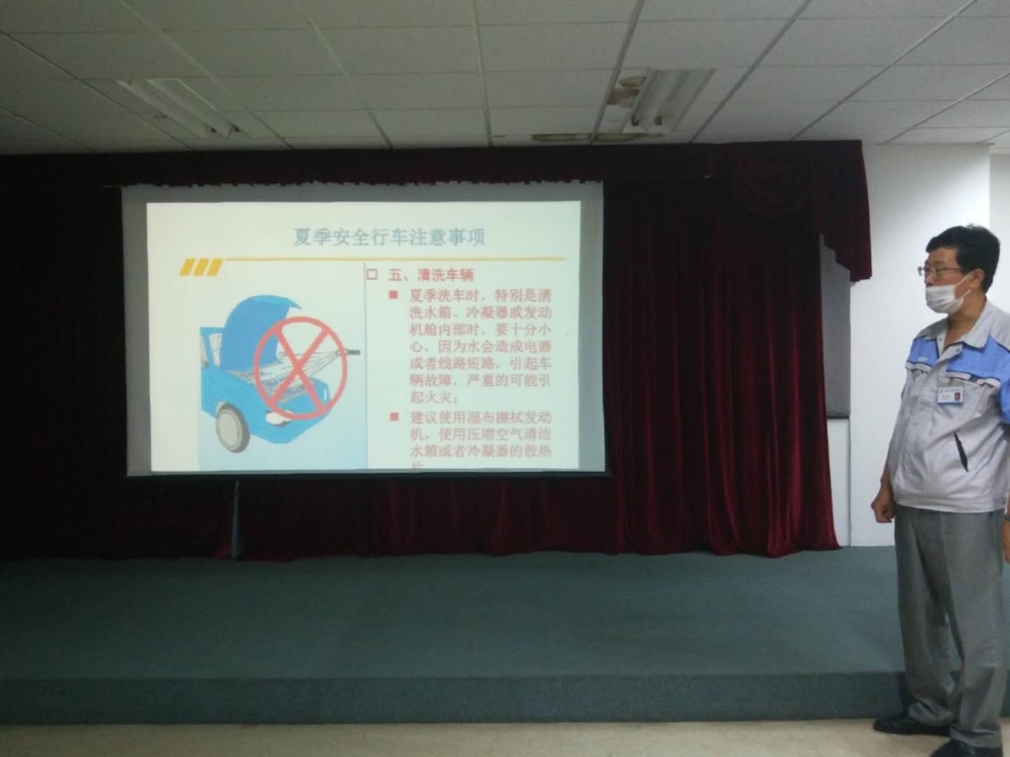 此次培訓(xùn)主要從夏季安全行車注意事項(xiàng)、夏季空調(diào)檢查和使用注意事項(xiàng)、雷雨天氣行車注意事項(xiàng)、涉水行車注意事項(xiàng)及雨季行車緊急狀況處置等五個(gè)方面展開。通過培訓(xùn)提高了員工夏季行車的安全認(rèn)知,增加了員工夏季駕車行車的操作要領(lǐng)及預(yù)防、處理事故的能力。