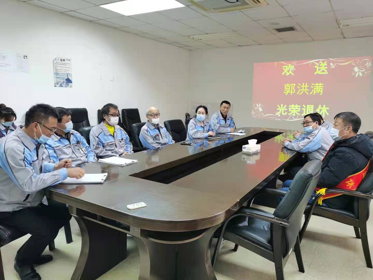 1月8日上午,在公司一號會議室內(nèi)為退休員工郭洪滿同志舉行了退休歡送會。公司村山總經(jīng)理、王喜全副總、西口副總、工會毛主席、管理部毛部長前來參加歡送會,并且代表公司送上誠摯的慰問與祝福!