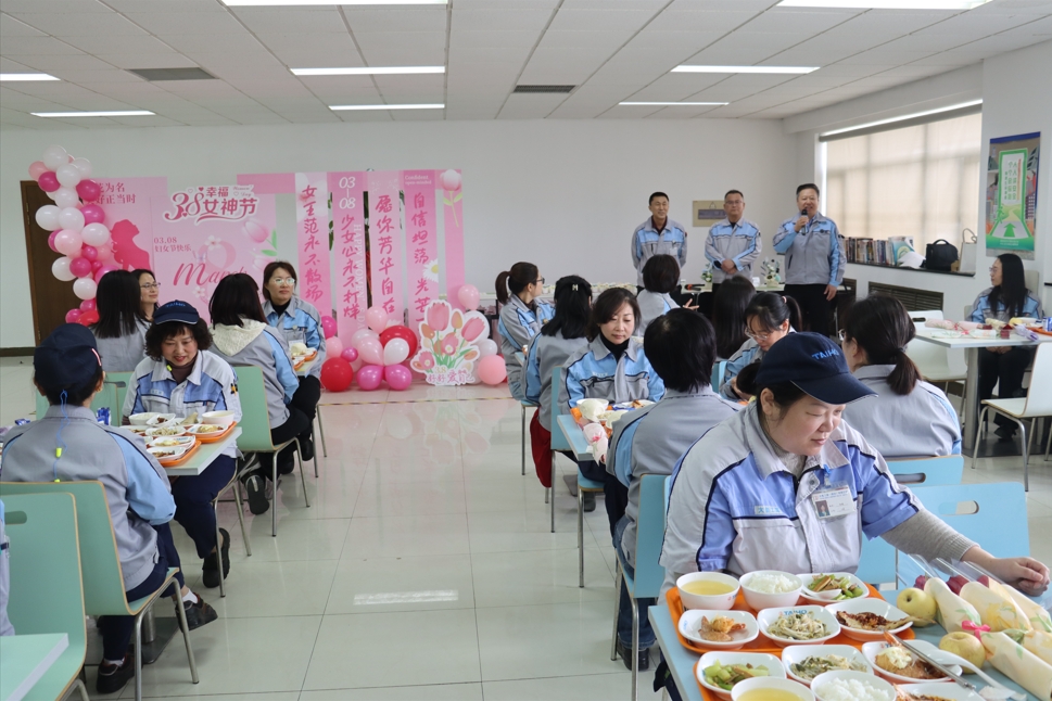 活動(dòng)伊始,李第一副總經(jīng)理代表公司致辭,充分肯定女職工在崗位上的卓越貢獻(xiàn),并強(qiáng)調(diào)將持續(xù)優(yōu)化關(guān)愛舉措。毛工會(huì)主席為每位女職工送上節(jié)日的祝福,現(xiàn)場(chǎng)洋溢著歡聲笑語(yǔ)。管理部炊事班大顯身手,推出芥末大蝦、魚籽雞翅等創(chuàng)意佳肴,搭配“女神專屬”奶油蛋糕,讓女職工們盡享味蕾盛宴。