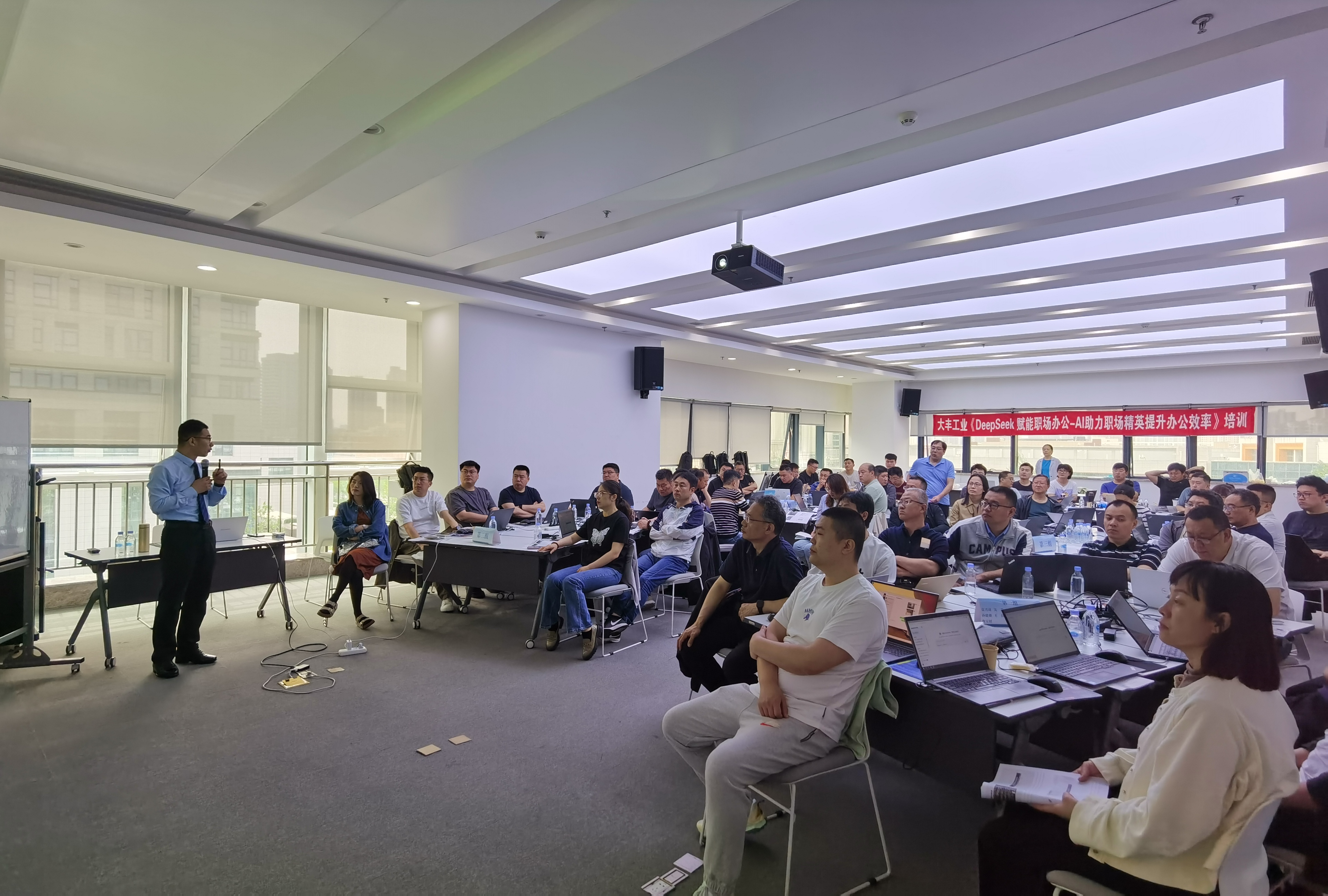為加速數(shù)字化轉(zhuǎn)型,賦能員工智能化辦公能力,公司于5月17日在國(guó)際人才港成功舉辦《DeepSeek賦能職場(chǎng)辦公-AI助力職場(chǎng)精英提升辦公效率》專(zhuān)題培訓(xùn)。活動(dòng)特邀人工智能辦公應(yīng)用實(shí)戰(zhàn)專(zhuān)家張韋韋老師授課,60余名中基層干部及核心員工積極參與。通過(guò)理論講解、案例實(shí)操與互動(dòng)研討,參訓(xùn)人員系統(tǒng)掌握了AI工具在職場(chǎng)辦公中的創(chuàng)新應(yīng)用,為提升個(gè)人效能與企業(yè)運(yùn)營(yíng)效率注入強(qiáng)勁動(dòng)力。